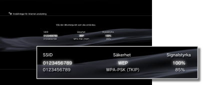 En lista med åtkomstpunkter inom PS3™-systemets räckvidd visas.