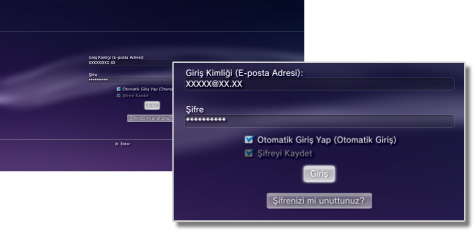Parolanızı kaydederseniz, parola, giriş ekranında önceden doldurulur. Otomatik olarak giriş yapmayı da ayarlarsanız, sistemi açtığınızda PS3™ sistemi PSNSM içine otomatik olarak giriş yapar.