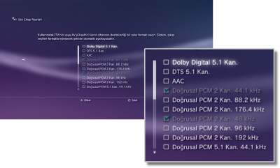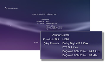 Sistemin ses çıkış ayarlarını yapar. Bu ayarlar temel olarak sistem, ev eğlence sistemleri için AV amplifikatörleri (alıcıları) gibi dijital ses çıkışını destekleyen ses aygıtlarına bağlandığında kullanılır.