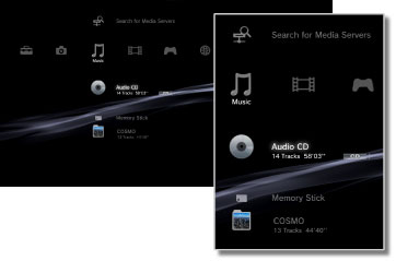 (файлове, записани на твърдия диск) | Възпроизвеждане на музикални файлове, записани на твърдия диск на системата PS3™. При наличието на данни за изображение се показват миниатюрни изображения. |