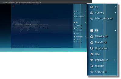 -knappen. Menyalternativen skiljer sig åt mellan bläddringsläget och fönsterläget.