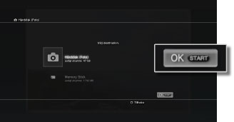 Välj en plats där innehållet ska sparas och tryck sedan på START-knappen.