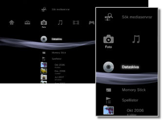 Filer som sparats på hårddisken | Visa bildfiler som sparats på PS3™-systemets hårddisk. Miniatyrbilder visas. |