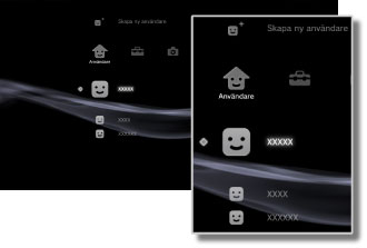 Skapa användare för PS3™-systemet. Om du skapar flera användare, lagras olika data separat för varje användare, t.ex. sparad data för PLAYSTATION®3-programvara, meddelanden som skickats och tagits emot under